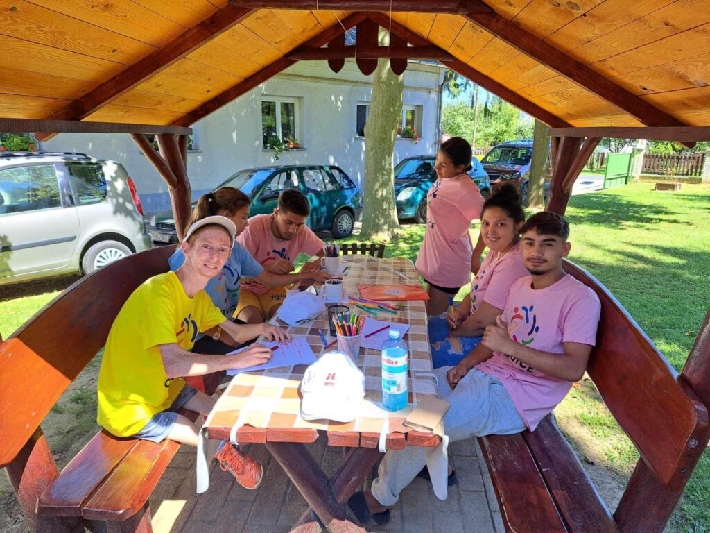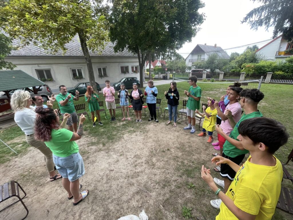 On Wednesday, although the day started rainy, we managed to make the clouds disappear with a game. We were tired by the middle of the week, so we really enjoyed Betti’s sound bath, which is becoming a tradition in the Parents’ House Family. The focus of the day was on the camp’s goal of finding 12 young people to join the Our Voice team and take part in the year and a half programme. The young people began to formulate their own messages, which you will soon be able to hear.