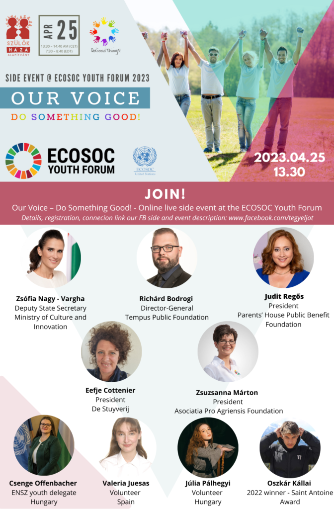 We are delighted to announce that the Parents’ House Public Benefit Foundation has been given the wonderful opportunity to organise a side event in conjunction with the UN Economic and Social Council Youth Forum. We’re so excited to announce the launch of our Erasmus+ project, ‘Our Voice’, together with the consortium!
